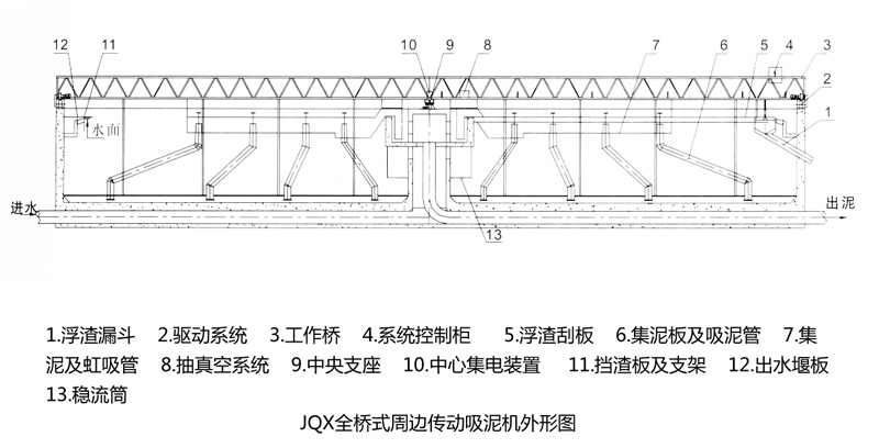 2.維護(hù)簡(jiǎn)單方便,運(yùn)行費(fèi)用低。通常采用虹吸管將集泥槽的污泥排至中心排泥管,沒有動(dòng)密封,避免上清液短流。